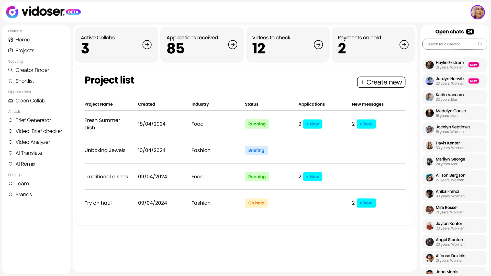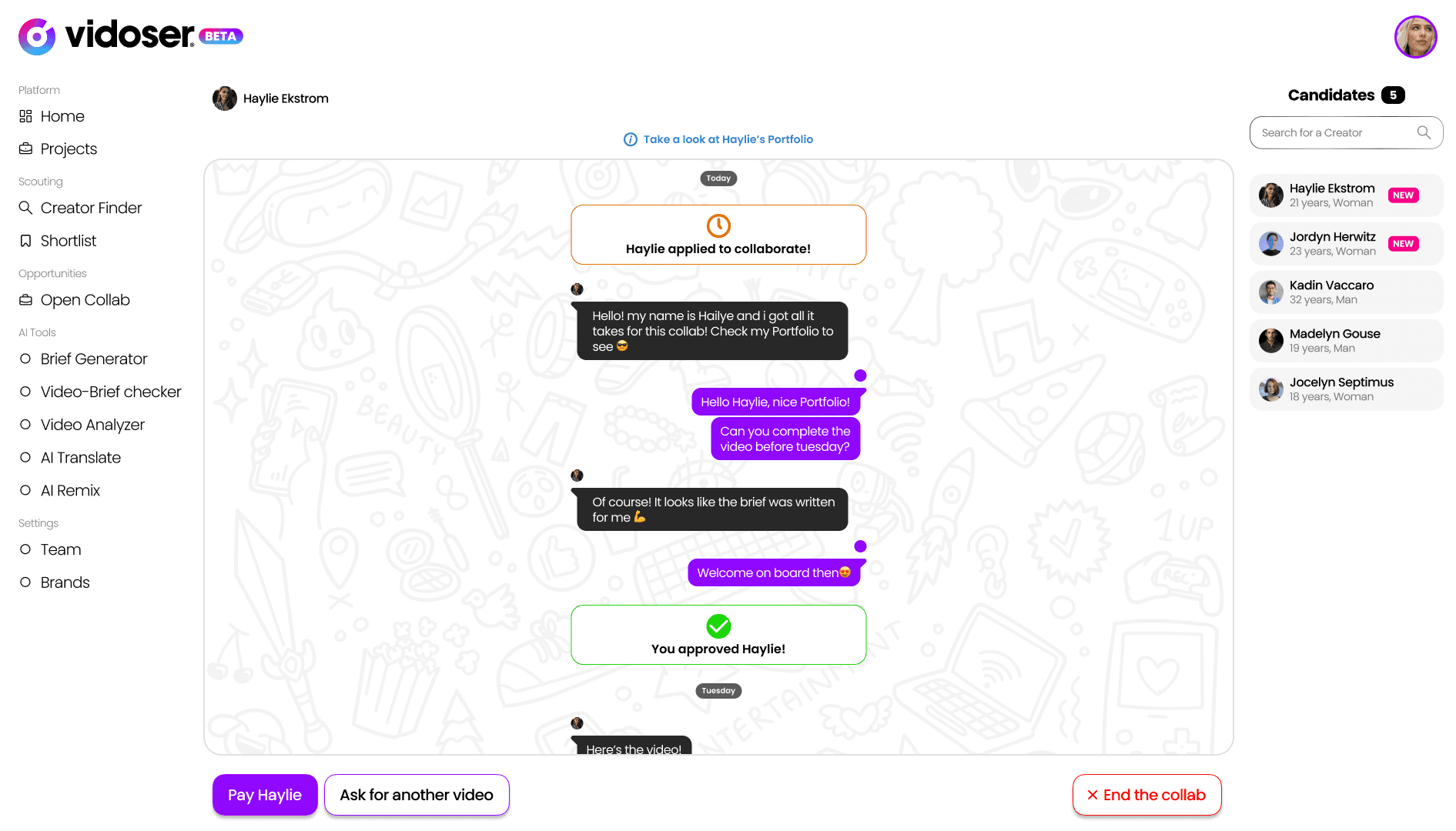Manage your entire workflow—from briefing and approvals to payments—in one central workspace with end-to-end chat.